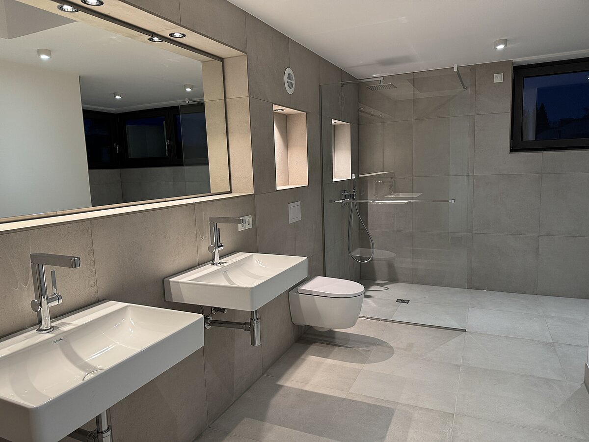 - Glas-Duschwände in den Bädern
